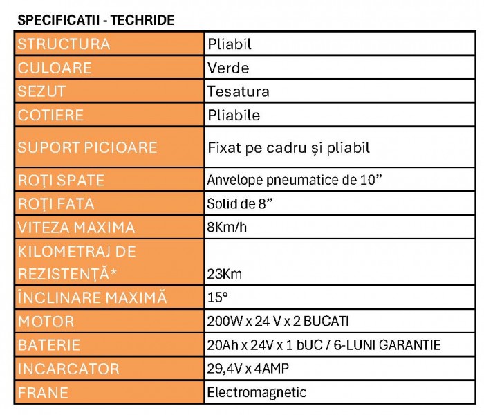 *Autonomia aproximativă este determinată și de greutatea ocupantului, starea bateriei, temperatura ambientală, modul de condus, terenul și viteza vântului.